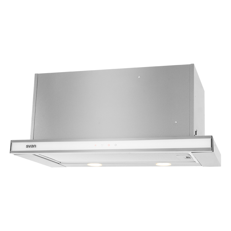 La campana extraíble SVAN SVCE702 combina diseño elegante y funcionalidad. Con 70 cm de ancho, 2 velocidades y filtro de aluminio, garantiza una cocina libre de humos. Las campanas SVAN son sinónimo de calidad y eficiencia, ideales para cualquier hogar moderno.