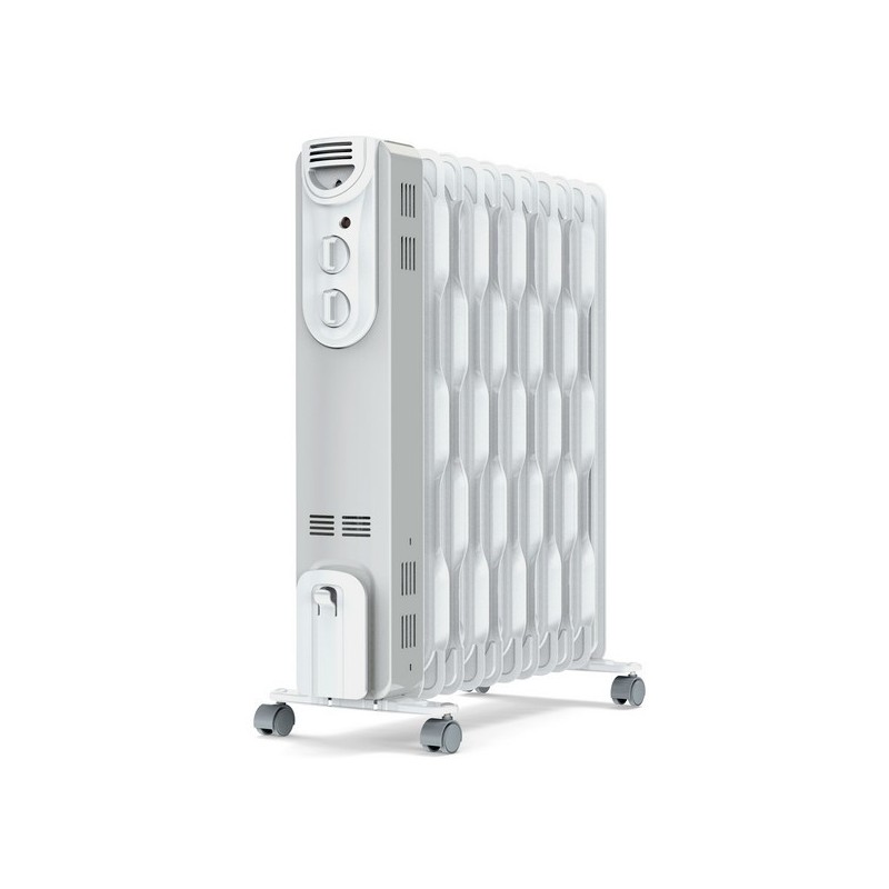 Supra ORSO 2500. Tipo: Radiador de aceite eléctrico, Calefacción tipo de elemento: Aceite. Adecuado para: Interior, Opciones de colocación: Piso, Color del producto: Gris, Blanco. Potencia de calentamiento: 2500 W, Potencia de calentamiento (min): 1000 W, Adecuado para habitaciones hasta: 25 m². Ancho: 470 mm, Profundidad: 250 mm, Altura: 635 mm.