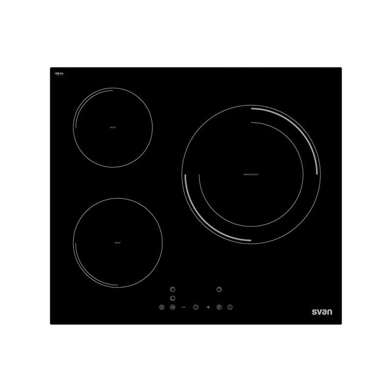SVAN SVI6393B. Color del producto: Negro, Tipo de instalación: Integrado, Anchura de los quemadores: 62 cm. Tipo de control: Tocar, Control de posición: Frente, Tipo de temporizador: Digital. Carga conectada (eléctrica): 7400 W, Voltaje de entrada AC: 220 - 240 V, Frecuencia de entrada AC: 50/60 Hz. Ancho: 590 mm, Profundidad: 520 mm, Altura: 62 mm