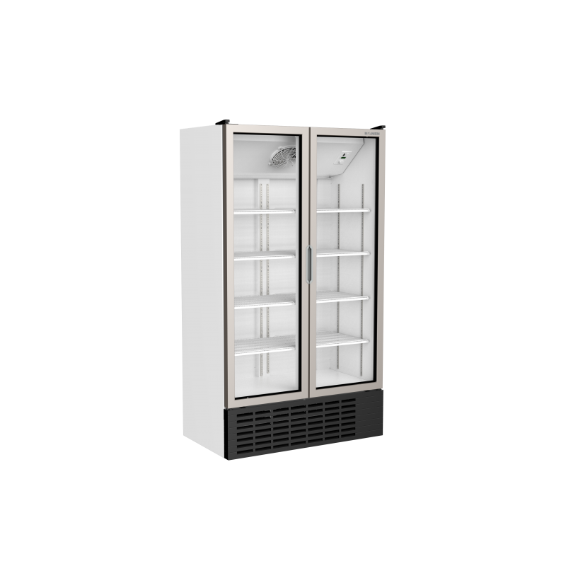 Su diseño en color gris, elegante y profesional, encaja perfectamente en bares, restaurantes, supermercados, tiendas de alimentación o cualquier entorno comercial. Las 4 baldas interiores facilitan una organización cómoda y eficiente, optimizando el espacio disponible.