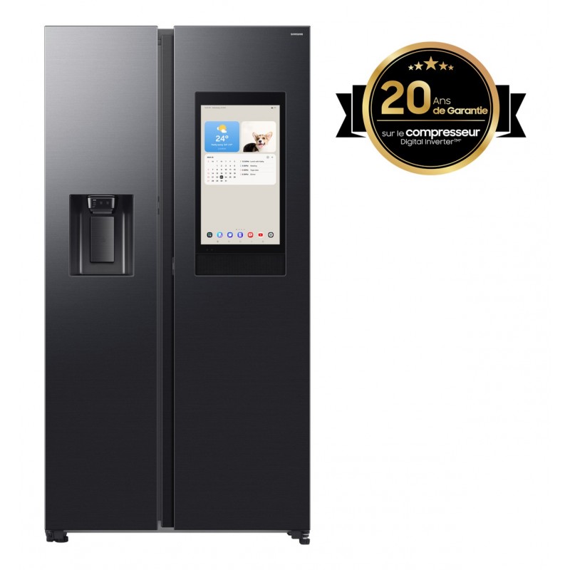 Samsung Series 9 Frigorífico Americano Family Hub Bespoke AI 178cm 614L Clase E Grafito RS90F66BEFEF. Tipo de instalación: Independiente, Diseño de producto: Puerta americana, Color del producto: Negro. Capacidad neta total: 614 L, Clase climática: ST, Clase de emisión de ruido: B. Frigorífico, capacidad neta: 389 L, Tipo de lámpara: LED. Congelador, capacidad neta: 225 L, Posición congelada: Lateral, Capacidad de congelación: 13 kg/24h. Aplicaciones de control compatibles: SmartThings