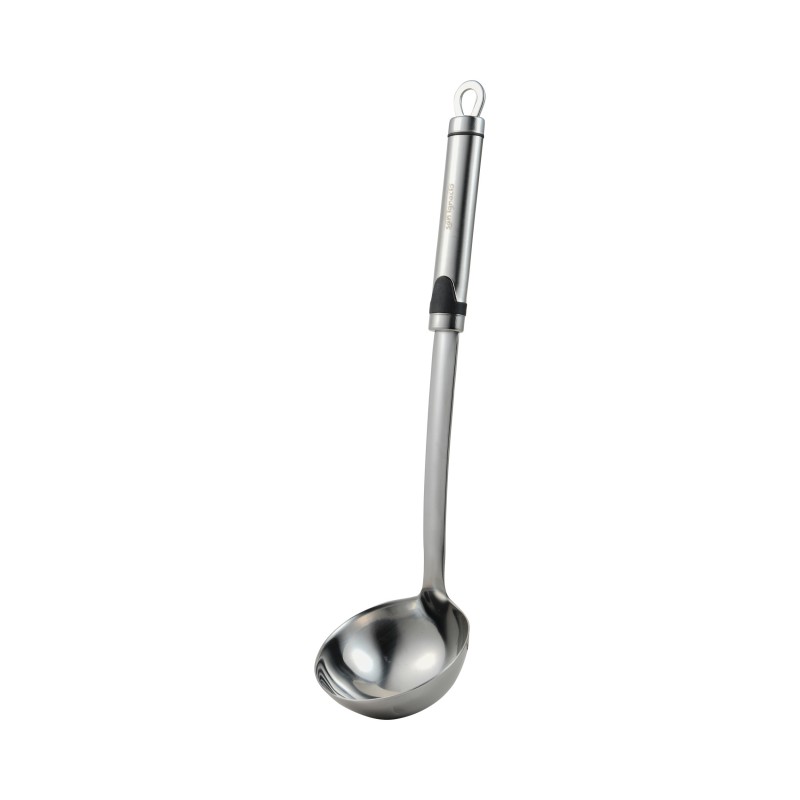 Cazo de sopa de la línea Experto de San Ignacio, fabricado en acero inoxidable de alta calidad que asegura resistencia y larga durabilidad. Su diseño profundo permite servir sopas, cremas y caldos con facilidad, evitando derrames. Incorpora un mango ergonómico que ofrece un agarre cómodo y seguro durante su uso. Ideal tanto para el hogar como para cocinas profesionales.