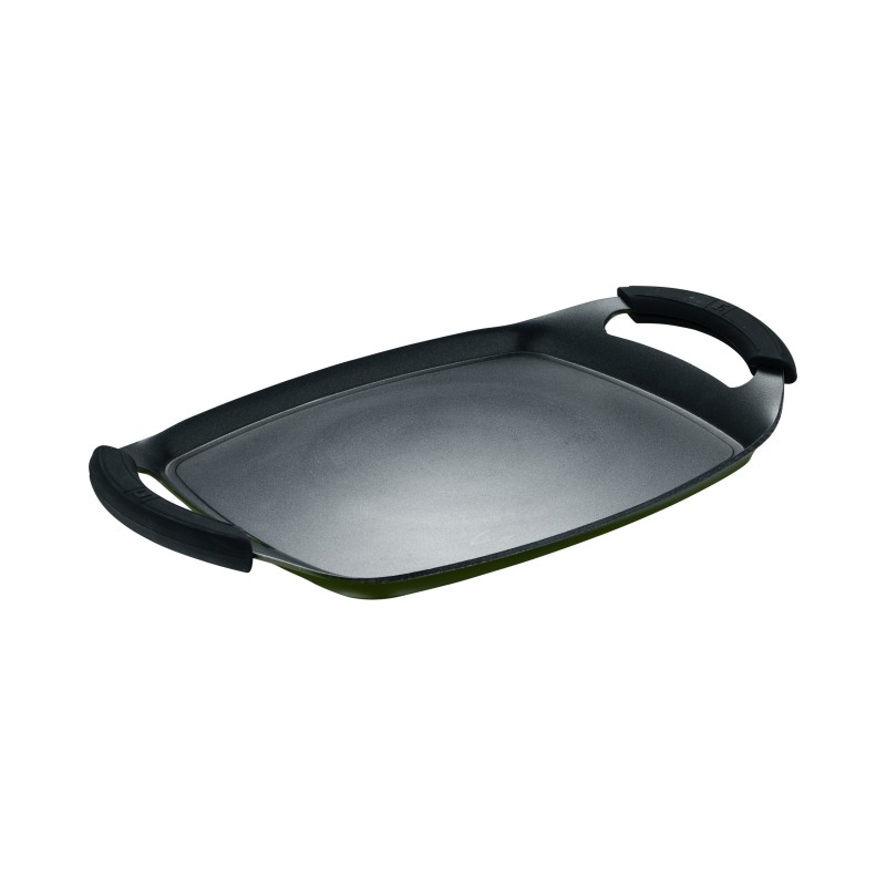Plancha de cocina San Ignacio de aluminio forjado con superficie grill de 37 x 25 cm. Ideal para cocinar carnes, pescados o verduras de forma saludable, con una excelente distribución del calor y compatible con todo tipo de cocinas, incluida la inducción.
