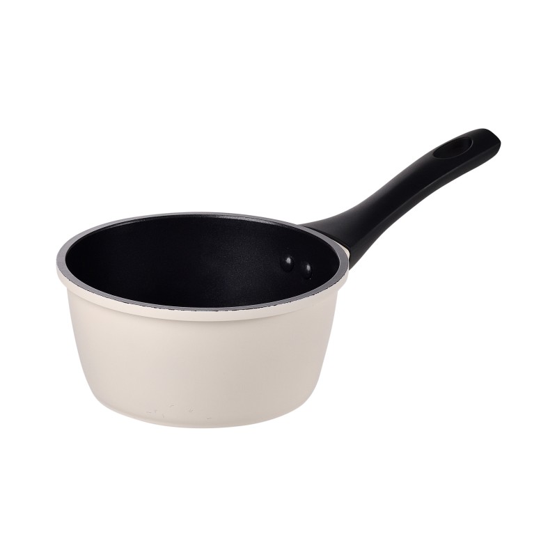 Cazo de 16 cm fabricado en aluminio forjado con revestimiento multicapa libre de PFOA. Equipado con mango de tacto suave que ofrece un agarre cómodo y seguro. Apto para todas las fuentes de calor, incluida inducción.