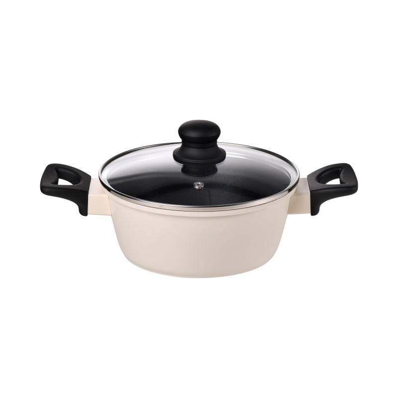 Cacerola con tapa de 20 cm fabricada en aluminio forjado con revestimiento multicapa libre de PFOA. Incluye asas de tacto suave y tapa de vidrio templado. Compatible con todo tipo de cocinas, incluida inducción.