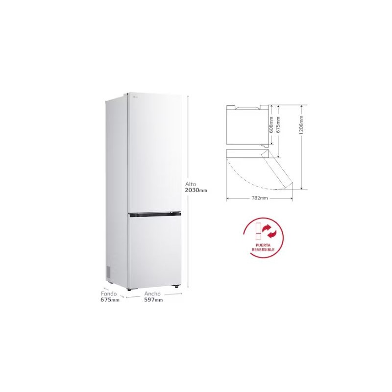 Frigorífico combinado LG GBBSJ20DSW en acabado blanco, con tecnología Total No Frost y DoorCooling+ para conservación eficaz de alimentos. Ideal para hogares que desean gran capacidad, eficiencia y diseño moderno.