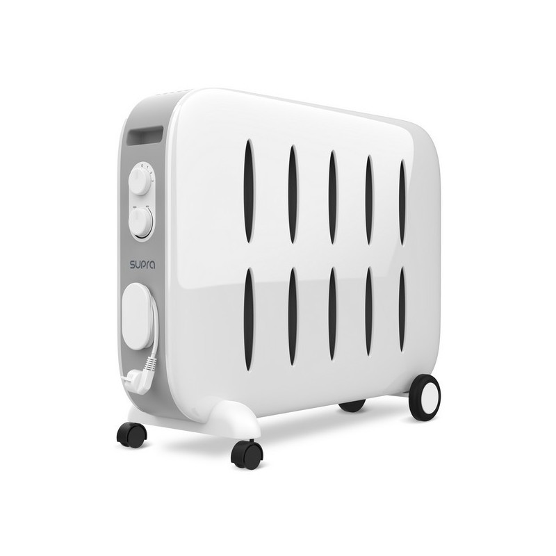 Supra CERAMINO 1522. Tipo: Convector, Calefacción tipo de elemento: Cerámico. Adecuado para: Interior, Opciones de colocación: Piso, Color del producto: Gris, Blanco. Potencia de calentamiento: 1500 W, Potencia de calentamiento (min): 600 W, Adecuado para habitaciones hasta: 20 m². Ancho: 739 mm, Profundidad: 280 mm, Altura: 561 mm. Cantidad por paquete: 1 pieza(s)