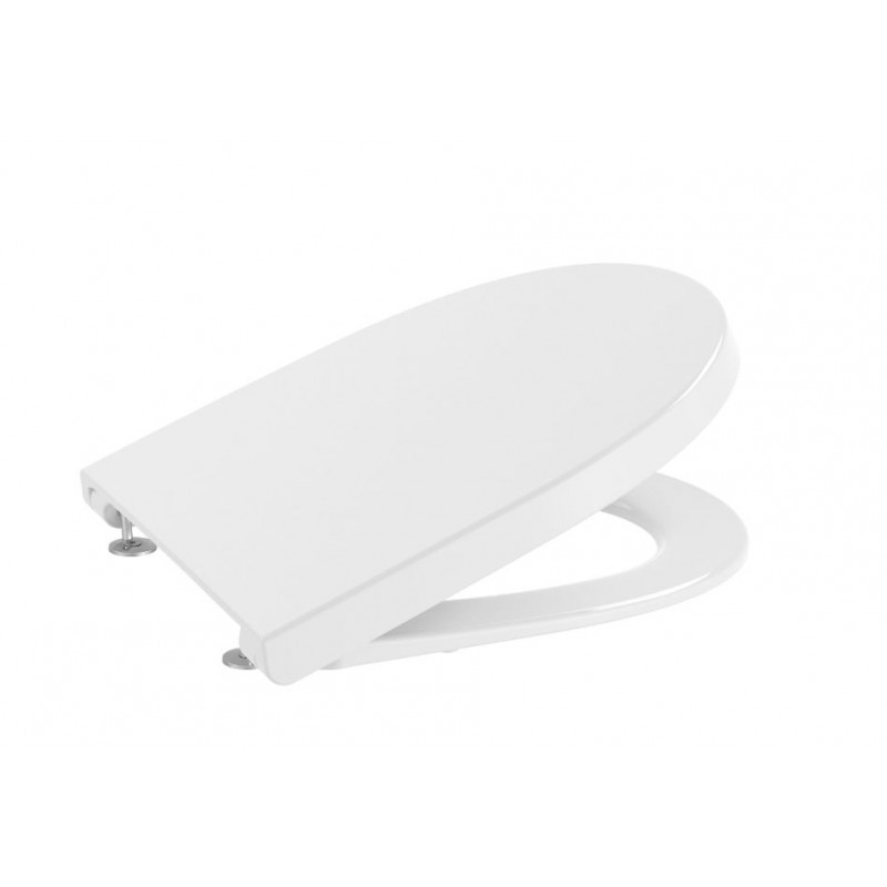 Tapa y asiento para inodoro de la serie Meridian de Roca, fabricados en Supralit® con caída amortiguada (Soft?Close). Proporcionan un cierre suave y silencioso, ofreciendo comodidad y durabilidad en el uso diario.
