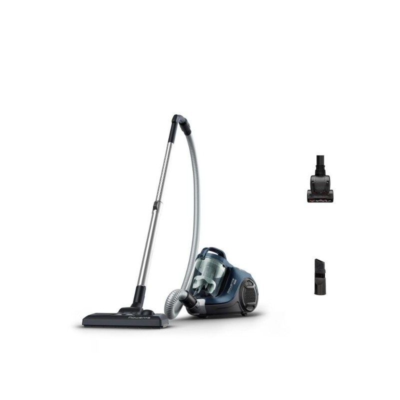 Aspirador Rowenta RO2941EA, 900?W, capacidad de 1,2?L, sin bolsa, diseñado para una limpieza eficiente del hogar. Ligero y maniobrable, ideal para pisos y alfombras, con sistema ciclónico que mantiene la potencia de succión constante y filtro lavable.