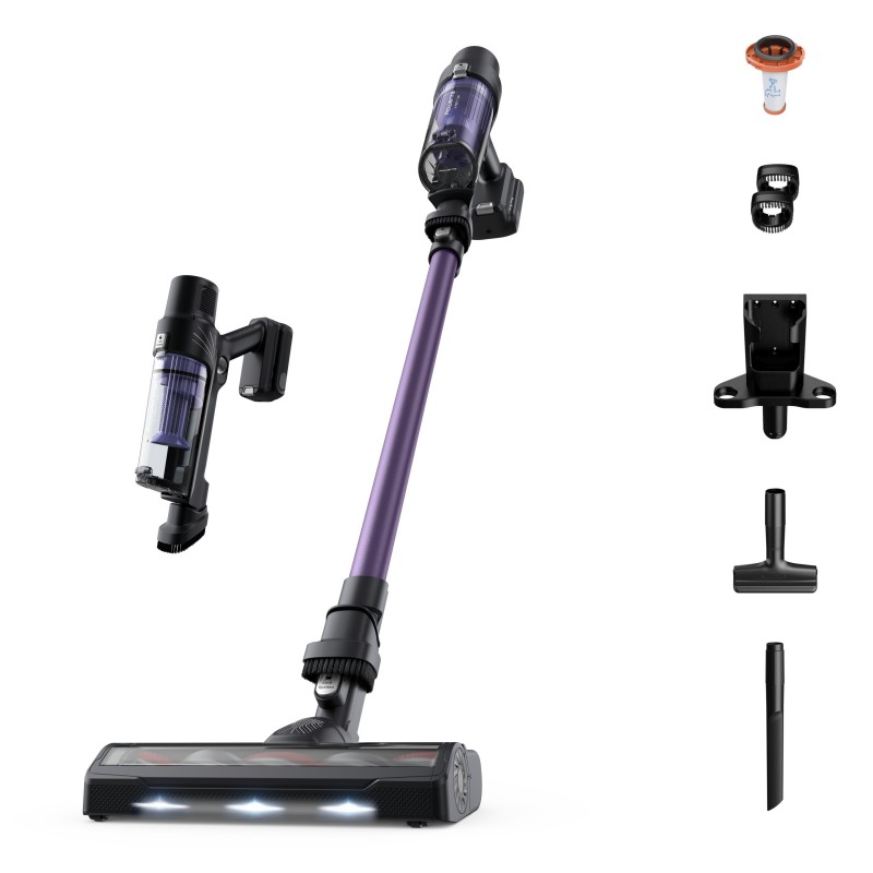 Rowenta RH6A39WO. Tipo de producto: Aspiradora escoba 2 en 1, Tipo de depósito: Sin bolsa, Color del producto: Negro, Púrpura. Tipo de limpiador: Secar, Filtración de aire en aspiradora: Ciclónico, Método de separación de la suciedad: Ciclónico/filtrado. Control de potencia: Electrónico. Fuente de energía: Batería, Potencia máx. de entrada: 140 W, Potencia del motor: 140 W.