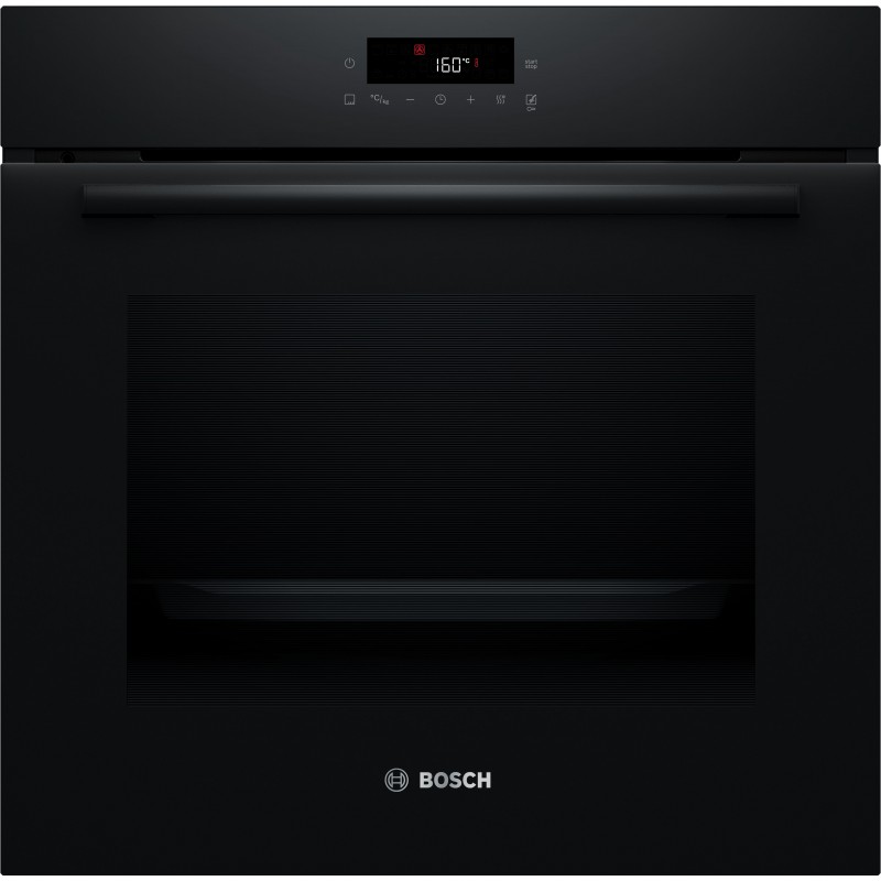 Bosch Serie 2 HBA571BB4. Tamaño del horno: Medio, Tipo de horno: Horno eléctrico, Total capacidad interior, horno (s): 71 L. Tipo de instalación: Integrado, Color del producto: Negro, Tipo de control: Tocar. Tipo de temporizador: Digital. Clase de eficiencia de energía: A+, Consumo de energía (convencional): 0,94 kWh, Consumo de energía (convección forzada): 0,69 kWh. Ancho de compartimiento de instalación: 56,8 cm, Profundidad del compartimiento de instalación: 55 cm, Altura del compartimiento de instalación: 59,5 cm