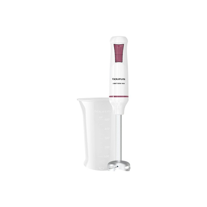 Taurus ROBOT 1000 INOX. Tipo: Batidora de inmersión, Color del producto: Negro, Rosa. Capacidad del tazón: 0,5 L, Tipo de control: Botones. Material de la cuchilla: Acero inoxidable. Potencia: 1000 W, Fuente de energía: Corriente alterna. No contiene: Bisfenol A (BPA)