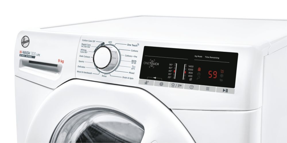 Hoover H-WASH 300 LITE H3W 49TE/1-80. Tipo de carga: Carga frontal. Capacidad nominal: 9 kg, Clase de secado por giro: B, Nivel de ruido (spin): 79 dB, Máxima velocidad de centrifugado: 1400 RPM. Color del producto: Blanco. Ancho: 60 mm, Profundidad: 530 mm, Altura: 850 mm. Clase de eficiencia de energía: D