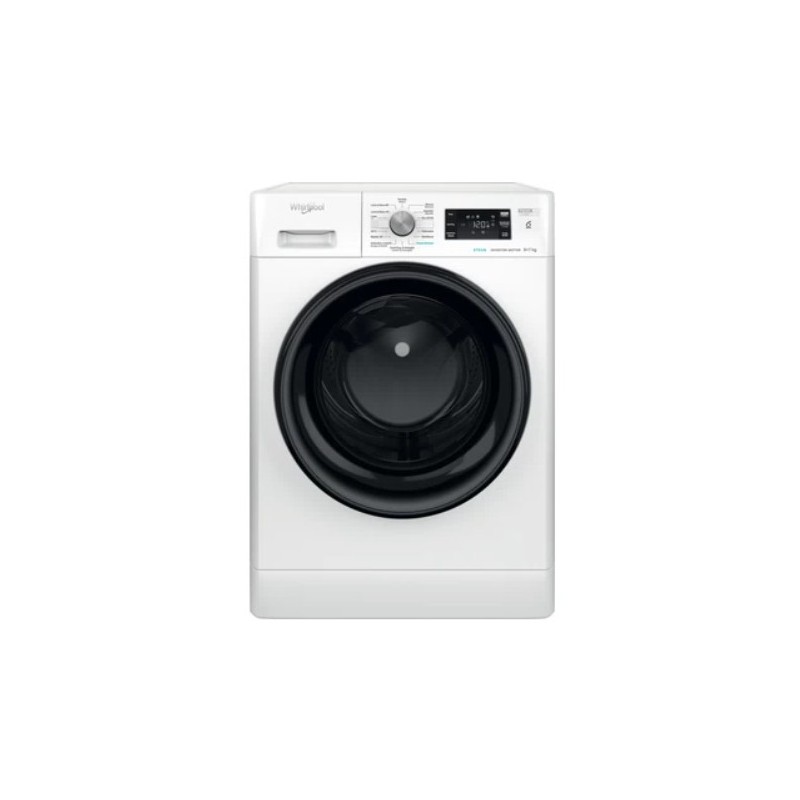 Whirlpool FFWDB 976258 BV SPT. Tipo de carga: Carga frontal, Tipo de instalación: Independiente, Color del producto: Blanco. Capacidad de nominal (lavado y secado): 7 kg, Máxima velocidad de centrifugado: 1600 RPM, Clase de secado por giro: A. Longitud del cable: 1,2 m. Clase de eficiencia energética (lavado): B, Clase de eficiencia energética (lavado y secado): E, consumo de agua de lavado: 50 L. Profundidad: 605 mm, Ancho: 595 mm, Altura: 850 mm