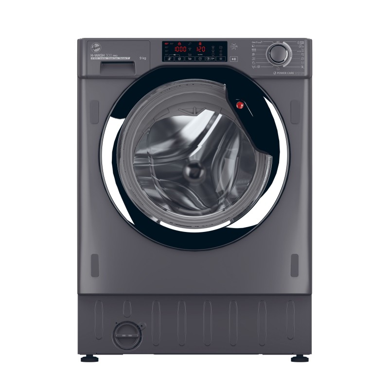 Hoover H-WASH 300 PRO HBWOS69TAMCRE-S. Tipo de carga: Carga frontal. Capacidad nominal: 9 kg, Clase de secado por giro: B, Nivel de ruido (spin): 76 dB, Máxima velocidad de centrifugado: 1600 RPM. Color del producto: Antracita. Ancho: 600 mm, Profundidad: 540 mm, Altura: 820 mm. Clase de eficiencia de energía: A