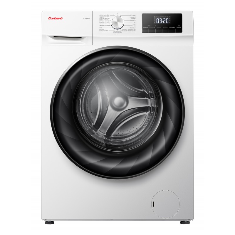 Corbero CLSH106VIN. Tipo de carga: Carga frontal, Tipo de instalación: Independiente, Color del producto: Blanco. Capacidad de nominal (lavado y secado): 6 kg, Máxima velocidad de centrifugado: 1400 RPM, Clase de secado por giro: B. Clase de eficiencia energética (lavado): A, Clase de eficiencia energética (lavado y secado): D, consumo de agua de lavado: 46 L. Profundidad: 610 mm, Ancho: 595 mm, Altura: 845 mm