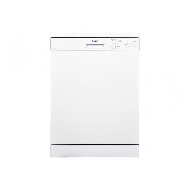 SVAN SVJ304. Tipo de instalación: Independiente, Talla del producto: Tamaño completo (60 cm), Color de la puerta: Blanco. Número de cubiertos: 12 cubiertos, Clase de emisión de ruido: A, Nivel de ruido: 52 dB. Clase de eficiencia de energía: E, Consumo de agua por ciclo de lavado: 12 L, Consumo de energía por 100 ciclos: 285 kWh.