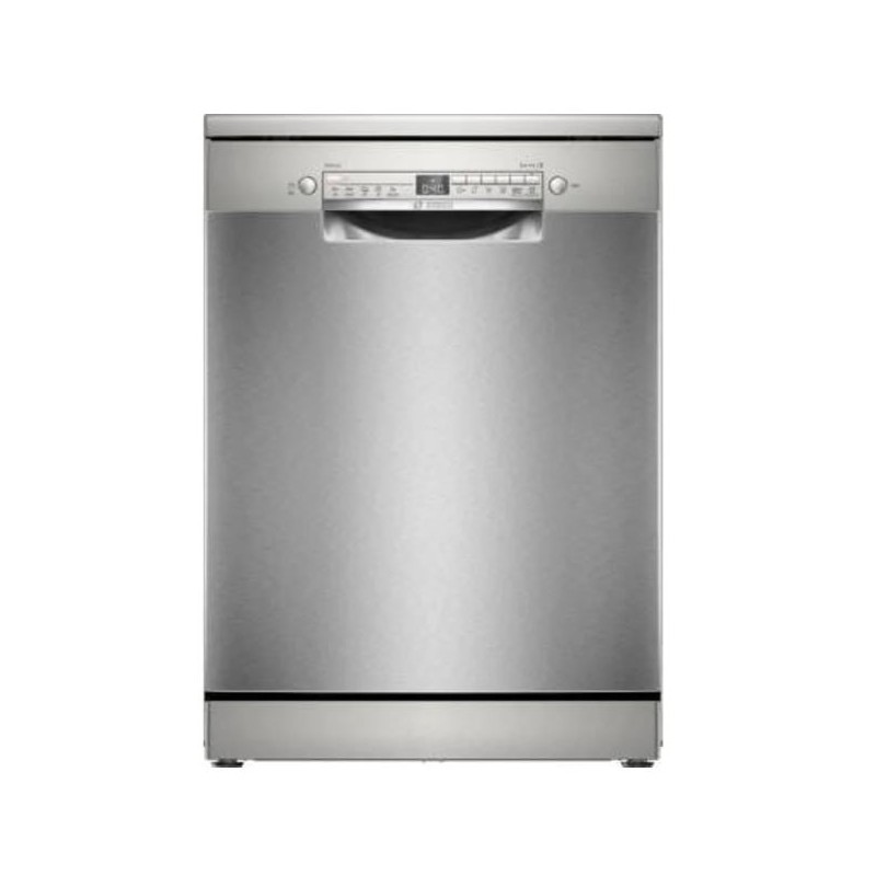 Bosch Serie 2 SMS2HTI54E. Tipo de instalación: Independiente, Talla del producto: Tamaño completo (60 cm), Color de la puerta: Acero inoxidable. Número de cubiertos: 12 cubiertos, Clase de emisión de ruido: C, Nivel de ruido: 46 dB. Aplicaciones de control compatibles: Bosch Home Connect. Clase de eficiencia de energía: E, Consumo de agua por ciclo de lavado: 9,5 L, Consumo de energía por 100 ciclos: 92 kWh. Ancho: 600 mm, Profundidad: 600 mm, Altura: 845 mm