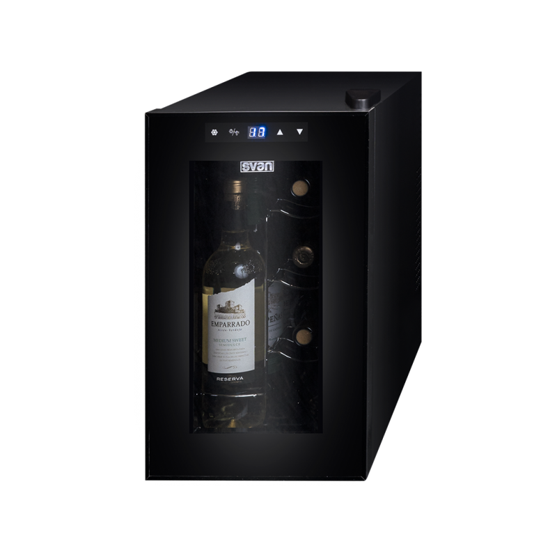Vinoteca con intercambiador de calor Peltier Svan, puerta de cristal, capacidad para 8 botellas, sistema de control táctill e iluminación LED.